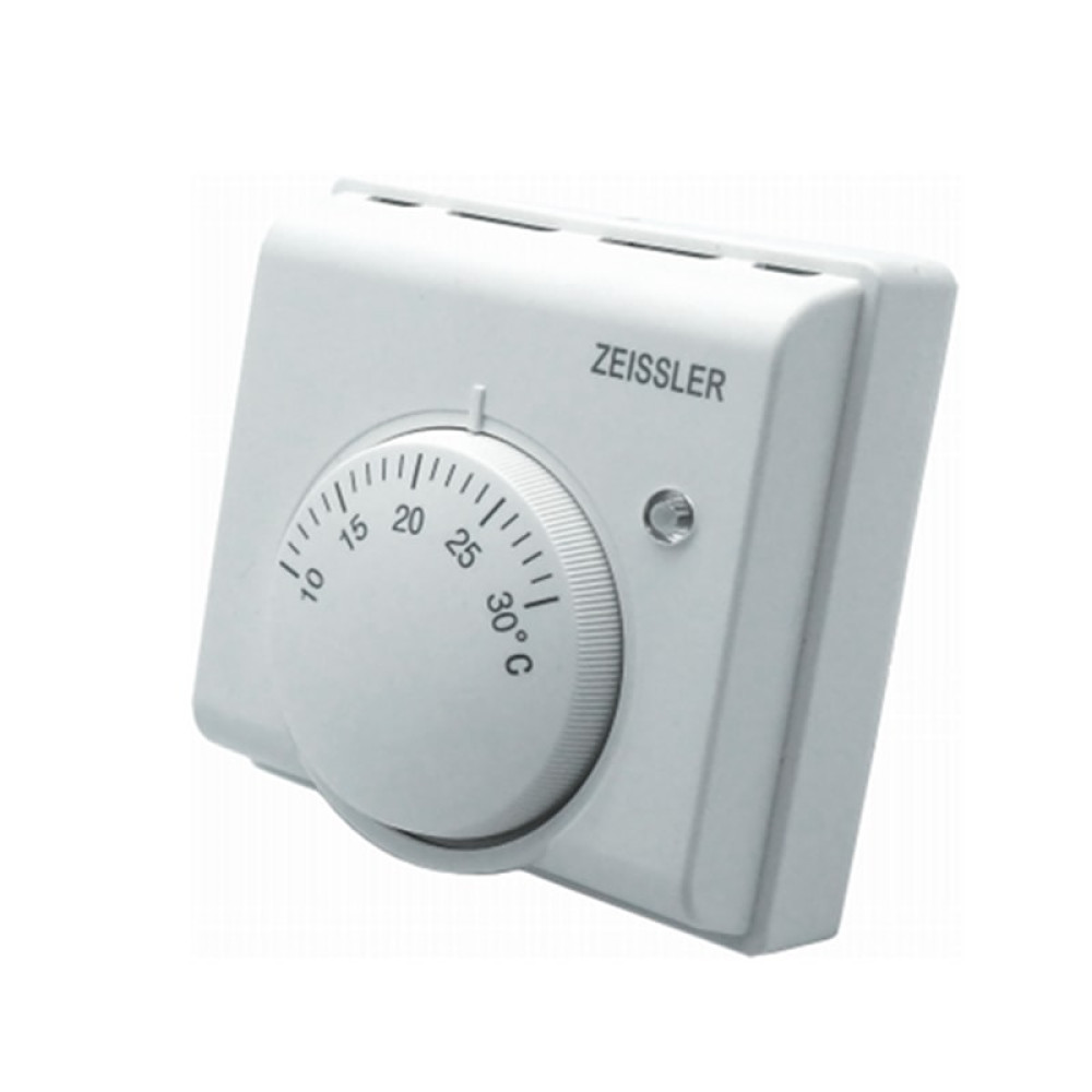 Комнатный термостат Zeissler предназначен для управления температурой воздуха в помещении по встроенному датчику. Подходит для управления водяным теплым полом.