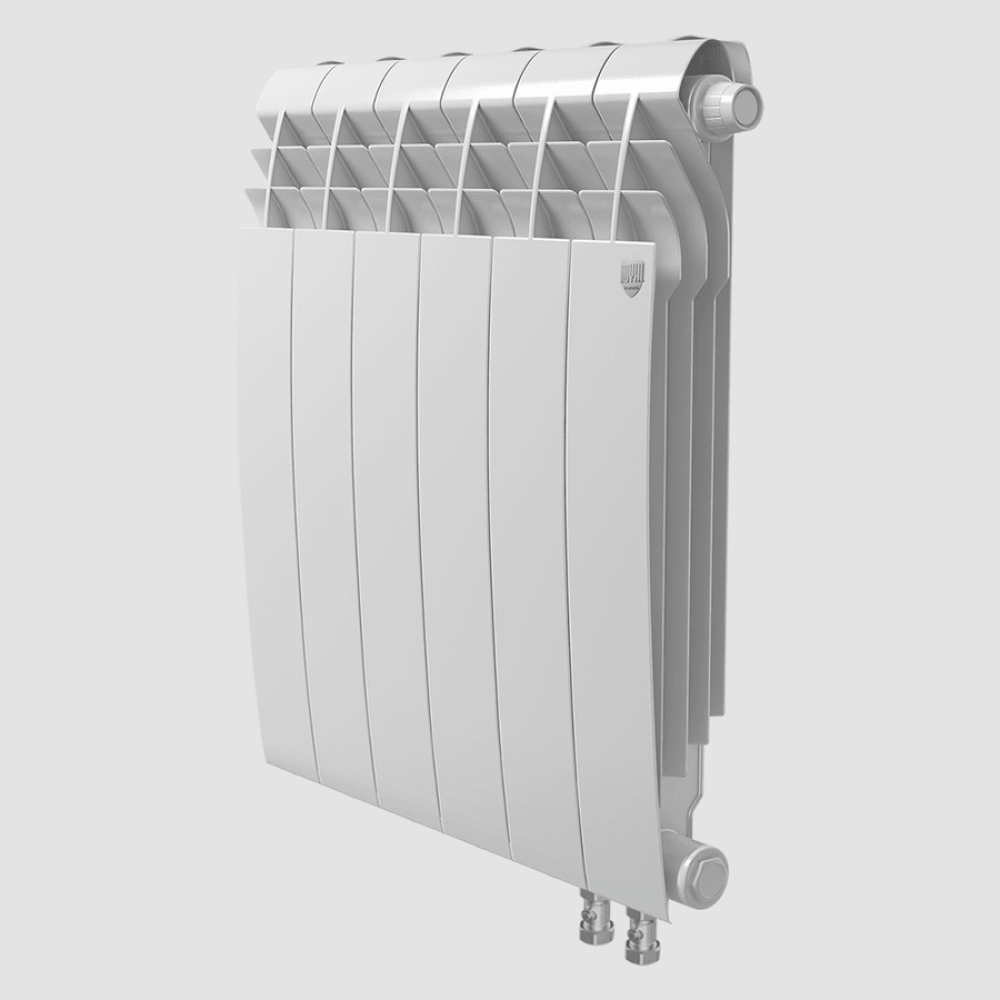 Royal BILINER V первый биметаллический дизайн-радиатор с нижним подключением – уникальный отопительный прибор с аэродинамическим дизайном, напоминающим крыло самолета. Благодаря такой необычной конструкции теплоотдача каждой секции увеличена. Дополнительные ребра на вертикальном коллекторе также способствуют увеличению КПД радиатора на 5%. Теплоотдача каждой секции – 170 Вт.