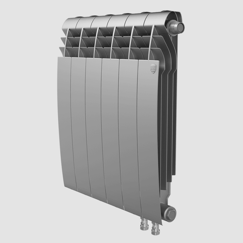 Royal BILINER V первый биметаллический дизайн-радиатор с нижним подключением – уникальный отопительный прибор с аэродинамическим дизайном, напоминающим крыло самолета. Благодаря такой необычной конструкции теплоотдача каждой секции увеличена. Дополнительные ребра на вертикальном коллекторе также способствуют увеличению КПД радиатора на 5%. Теплоотдача каждой секции – 170 Вт.
