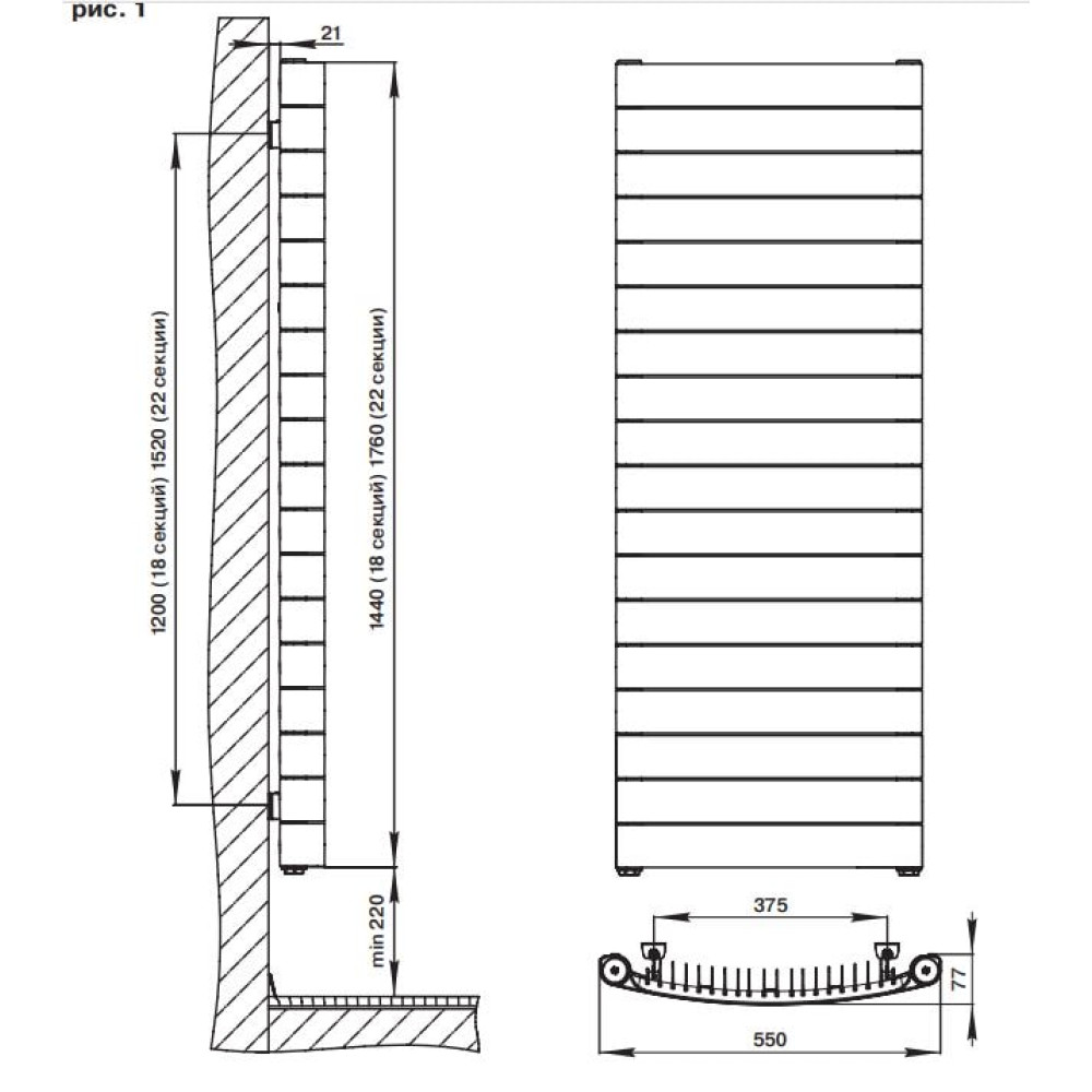 Rifar Convex - высокие (вертикальные) биметаллические секционные радиаторы российского производителя компании РИФАР. Вы можете купить радиаторы Конвекс высотой 1440 мм (CONVEX 500-18) или 1760 мм (CONVEX 500-22) с нижними вариантами подключения. Ширина приборов - 550 мм, глубина - 77 мм.