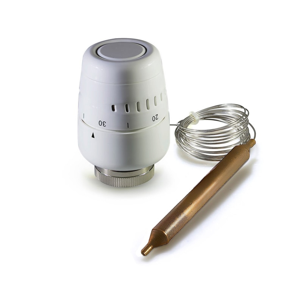 Термостатическая головка с погружным датчиком служит для регулирования и поддержания температуры теплоносителя в системе отопления. Погружной датчик устанавливается в специальную гильзу, которая ввинчивается в подающий патрубок трубопровода отопительной системы. Чаще всего термоголовка с погружным датчиком используется в системах теплого пола. Термостатическая головка с выносным датчиком служит для регулирования и поддержания температуры окружающей среды в отдельном помещении и используется тогда, когда невозможна корректная работа термостатической головки со встроенным датчиком: при наличии преград, задерживающих тепло , при необходимости вертикальной установки терморегулятора, при установке в зоне сквозняка.