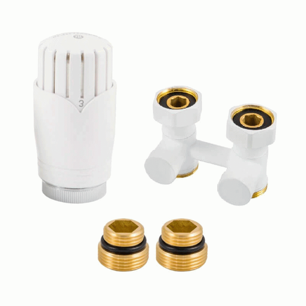 Комплект для нижнего подключения угловой Delta 3/4"x3/4" D=50 мм с термоголовкой М30x1.5 белый