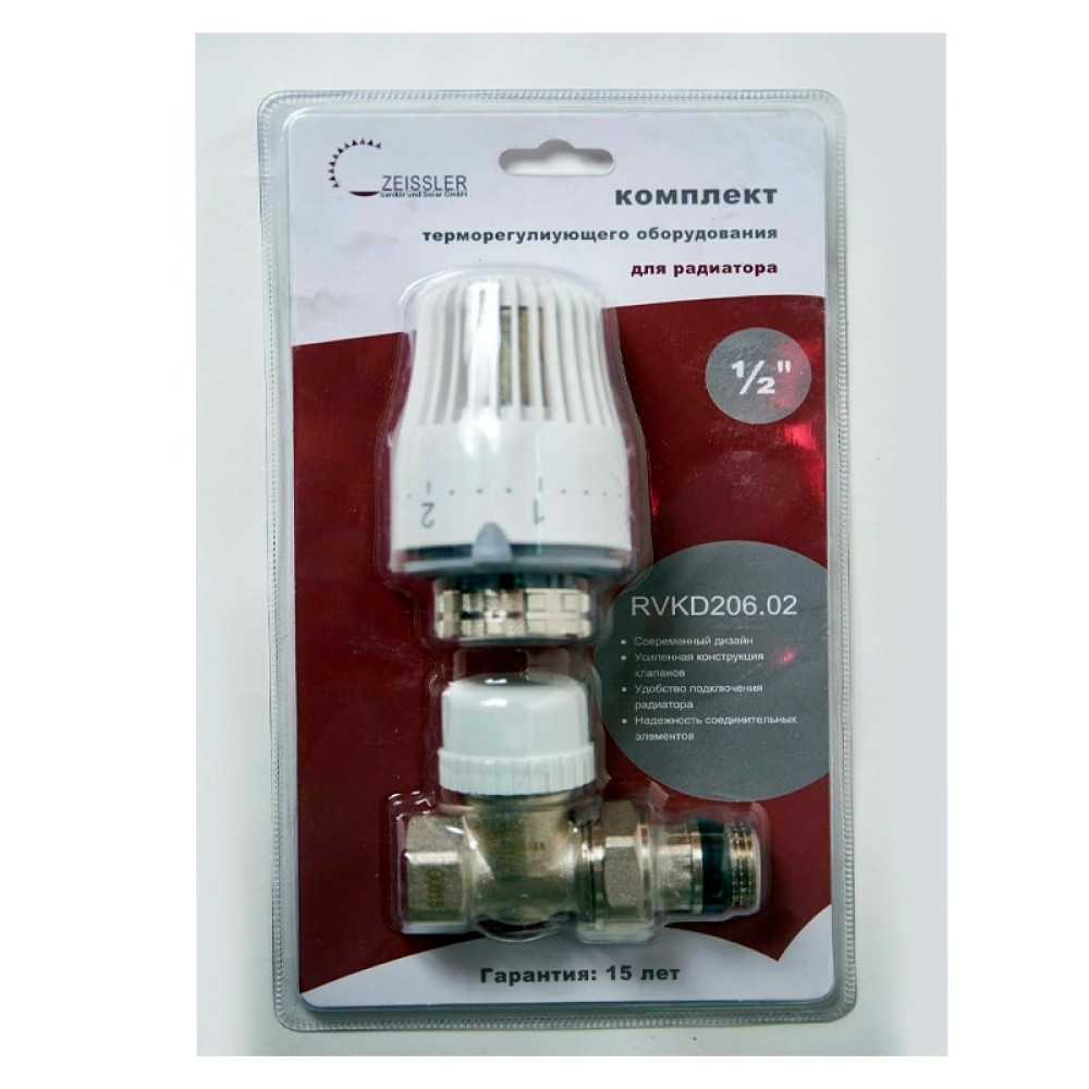 Комплект прямой термостатический TIM 1/2" (клапан прямой+термоголовка)