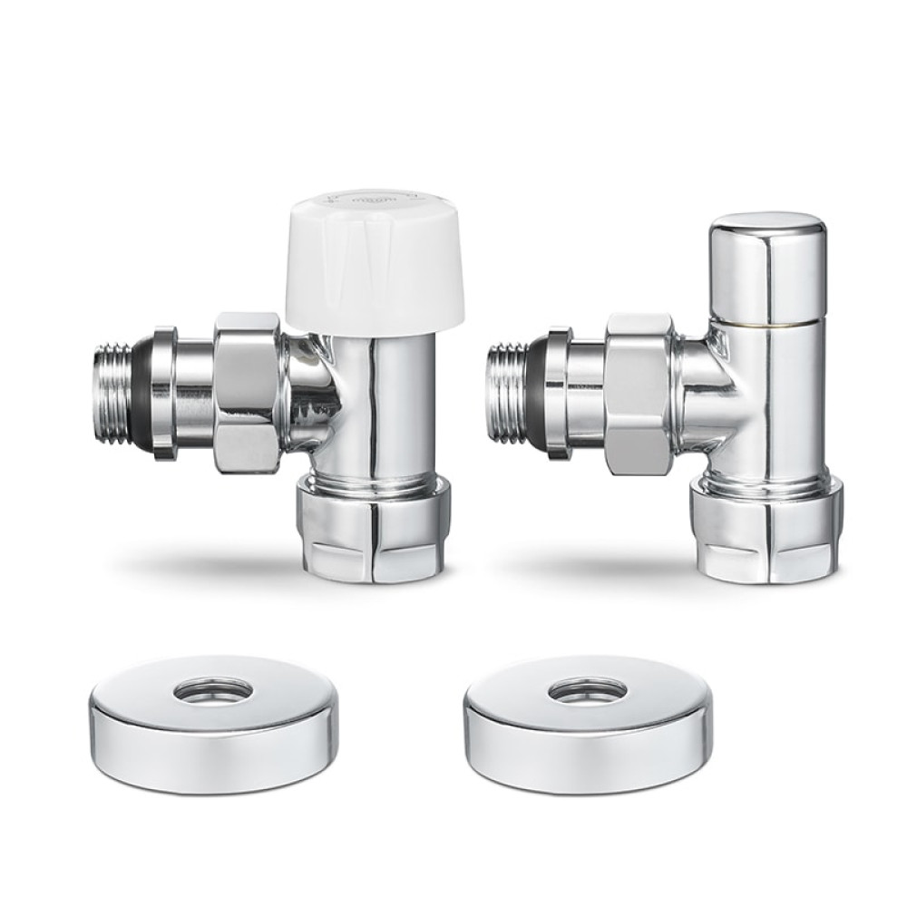 Комплект радиаторных клапанов угловой Varmega №1, 1/2"х3/4"EK резьба ВР/НР, цвет хром