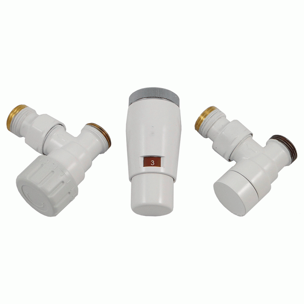 Комплект радиаторный угловой Delta 1/2" с термоголовкой М30x1.5 белый