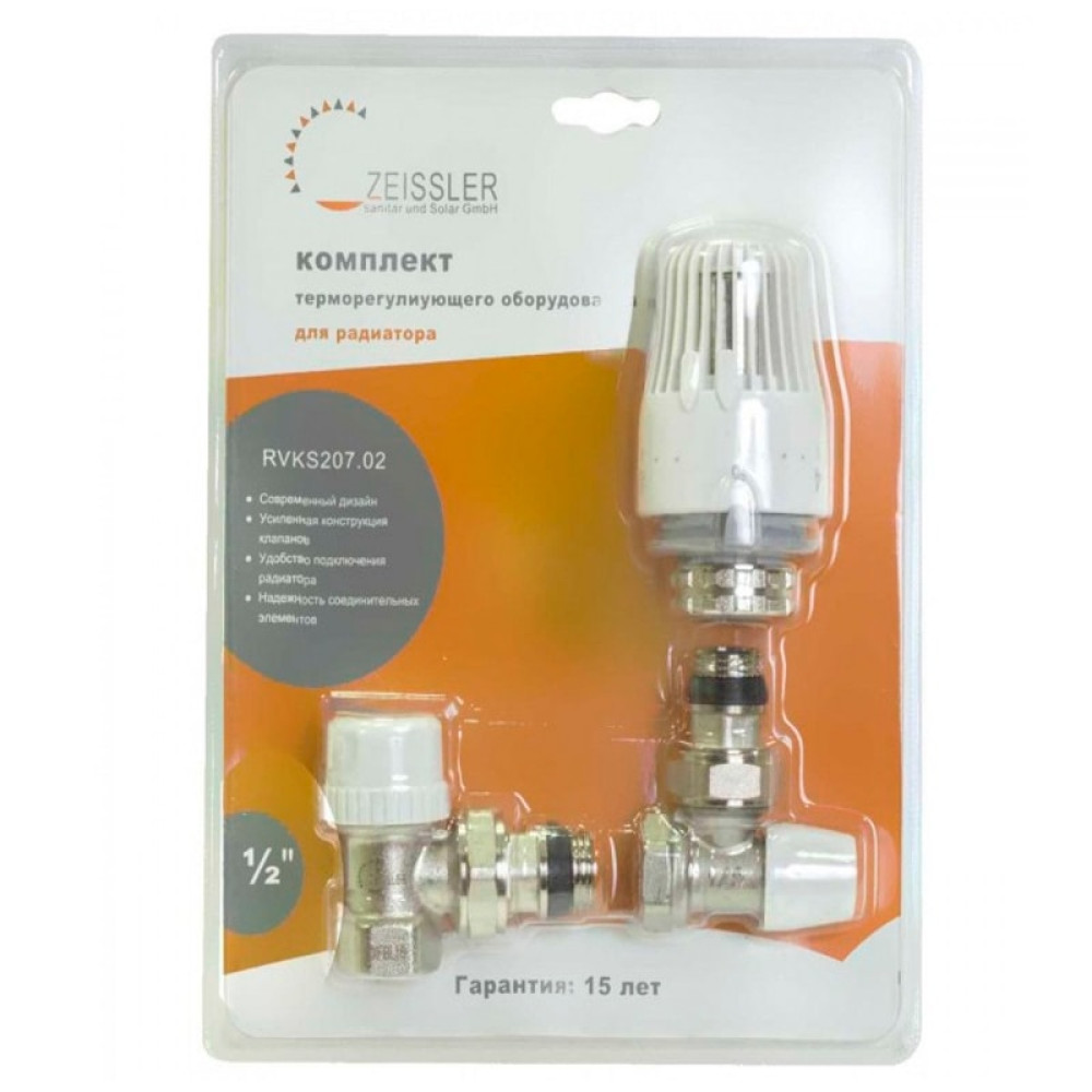 Комплект термостатический TIM предназначен для прямого подключения и состоит из термостатического клапана, термоголовки и настроечного клапана с быстрым подсоединением (наличие стопорного кольца). Все комплектующие оформлены единым набором и запаяны в блистере.