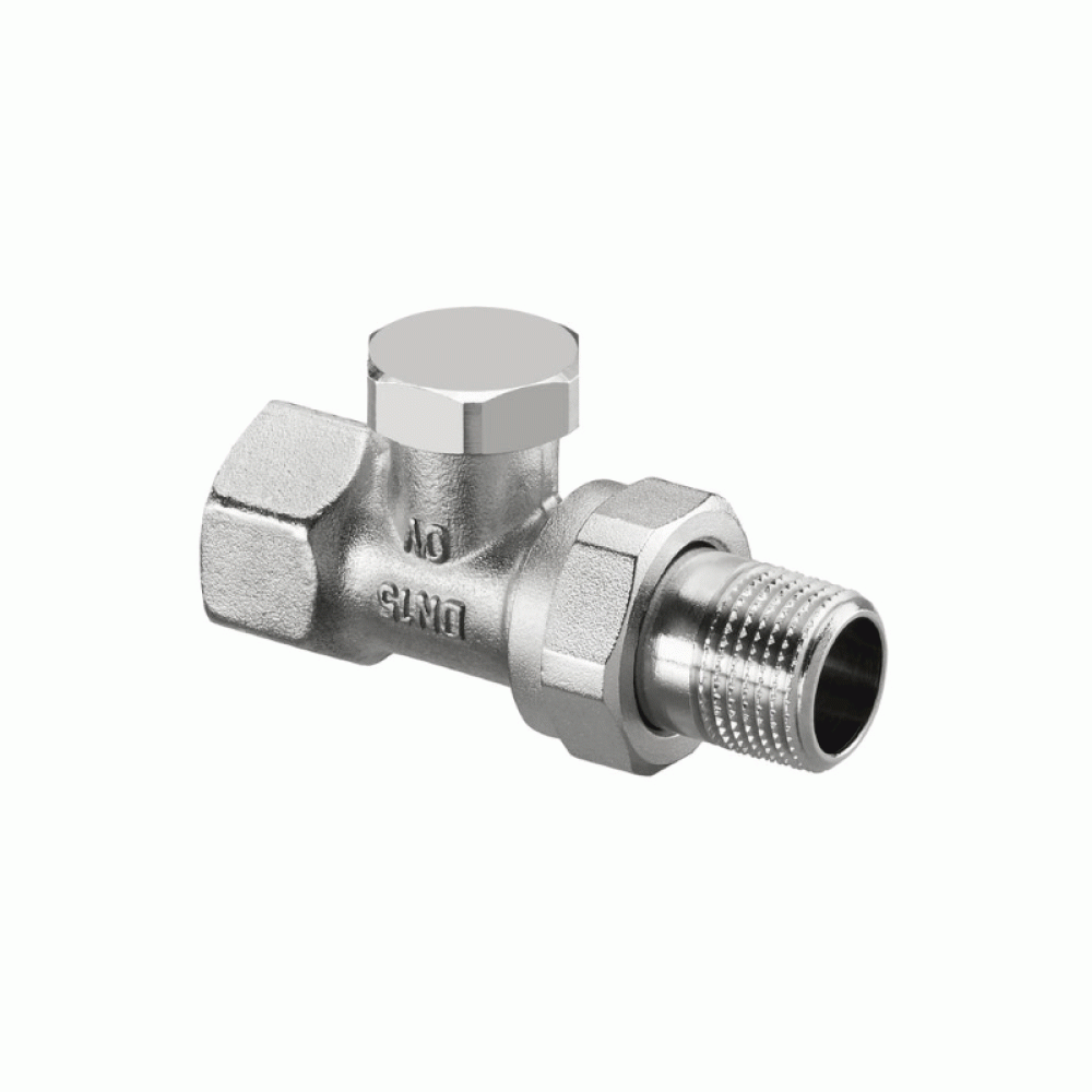 Корпус вентиля изготовлен из никелированной латуни. Дисковый клапан выполнен из латуни с кольцеобразным уплотнением из EPDM. Имеет латунный защитный колпачок с дополнительным мягким уплотнением. Вентиль имеет два патрубка с резьбовым соединением Rp 1/2" ВР х G 1/2" НР. Наличие полусгона позволяет монтировать и демонтировать клапан без демонтажа трубопровода.