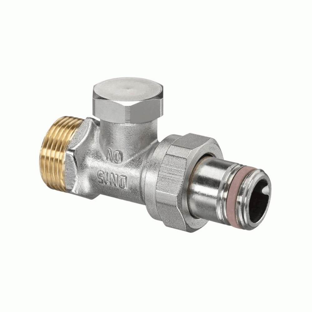 Корпус вентиля изготовлен из никелированной латуни. Дисковый клапан выполнен из латуни с кольцеобразным уплотнением из EPDM. Имеет латунный защитный колпачок с дополнительным мягким уплотнением. Вентиль имеет два патрубка с резьбовым соединением с самоуплотнением R 1/2" НР х G 3/4" НР. Наличие полусгона позволяет монтировать и демонтировать клапан без демонтажа трубопровода.