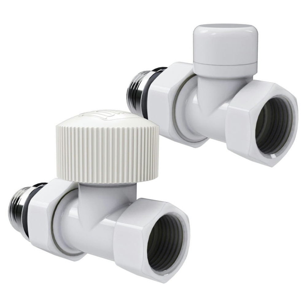 Термостатические наборы серии Design поставляется в комплектации: клапан термостатический для установки на подающий трубопровод, запорный клапан для установки на обратный трубопровод.
