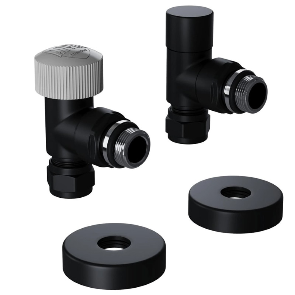 Термостатические наборы серии Design Pro поставляется в необходимой для чистового монтажа комплектации: клапан термостатический для установки на подающий трубопровод, запорный клапан для установки на обратный трубопровод, 2 гайки-фитинга для подключения клапанов к монтажной трубке 15 мм и 2 цельных латунных отражателя с внутренним резиновым уплотнением внутренним диаметром 15,2 мм.