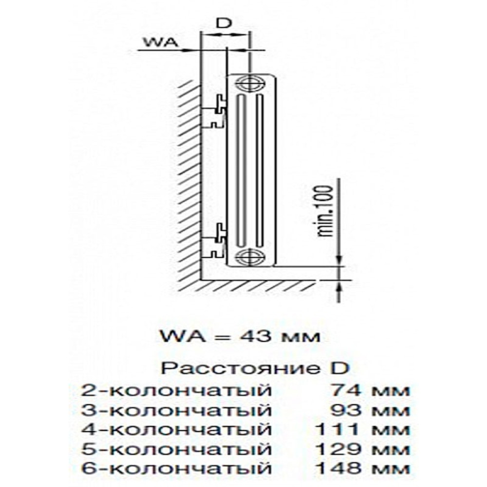 Для крепления радиаторов шириной от 4 до 20 секций требуется 4 комплекта CVD 1 + BH.
