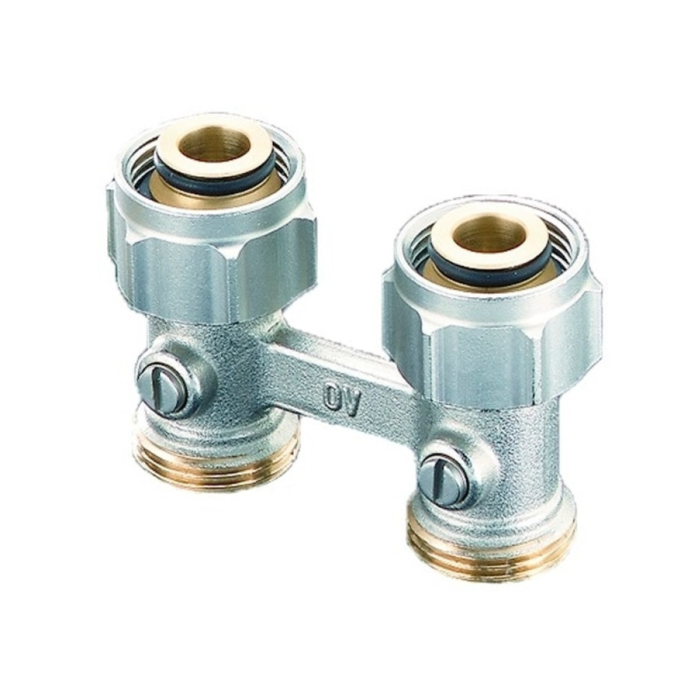 Узел нижнего подключения Oventrop Multiflex F ZB 1015883 1/2"х3/4" прямой для радиатора предназначен для присоединения радиаторов с межосевым расстоянием присоединительных патрубков 50 мм, оборудованных интегрированным вентилем, к двухтрубной системе отопления с принудительной циркуляцией. Присоединительный узел Oventrop Multiflex сконструирован таким образом, что к нему подключаются полипропиленовые, металлопластиковыя, медные трубы, а также трубы из мягкой стали.