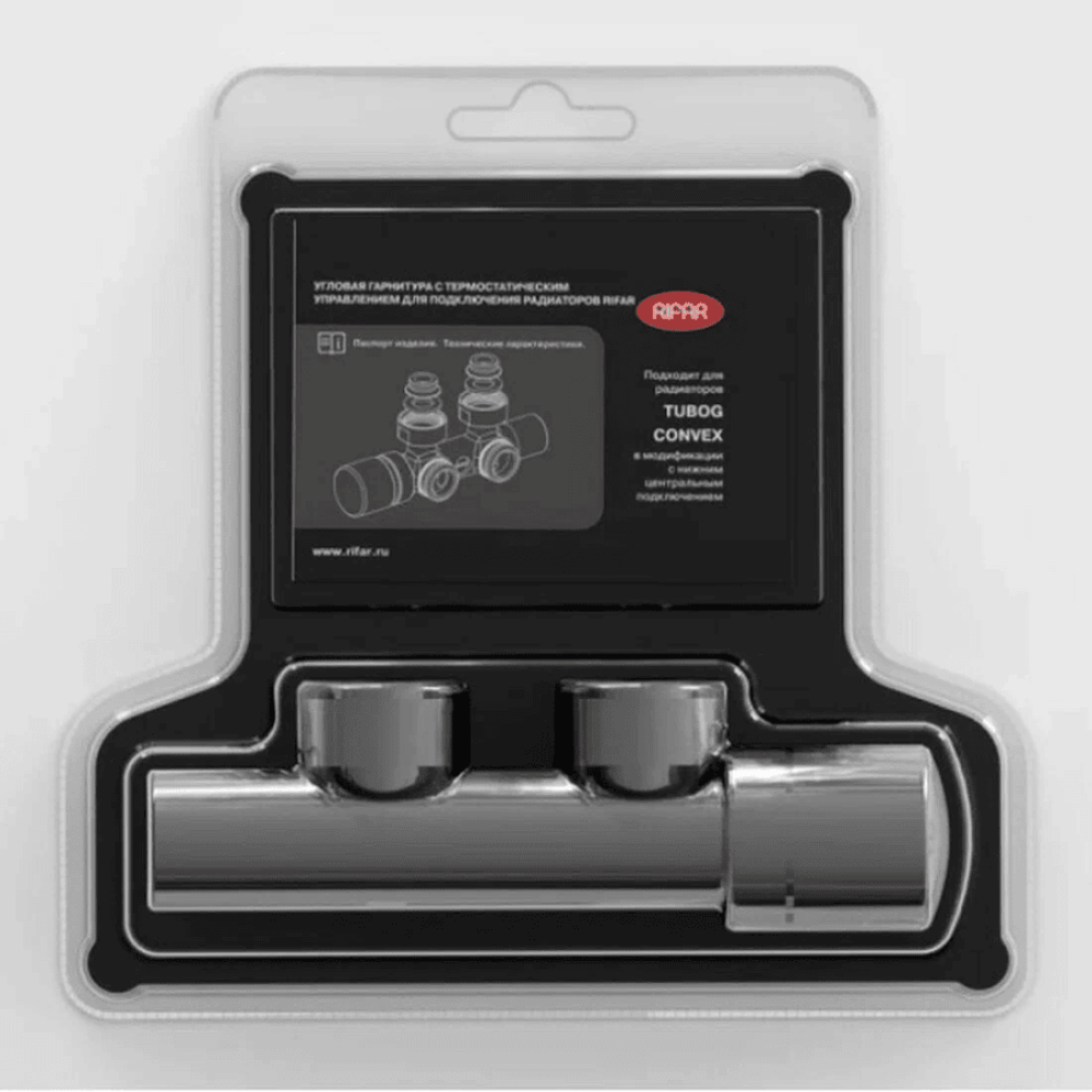 Гарнитура оснащена термостатическим клапаном, запорным вентилем и заслонкой на байпасе.