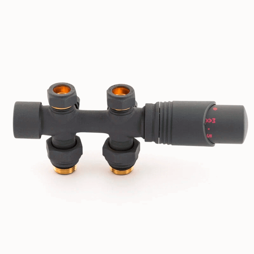 Узел нижнего подключения универсальный Delta Duo антрацит с термоголовкой М30x1.5