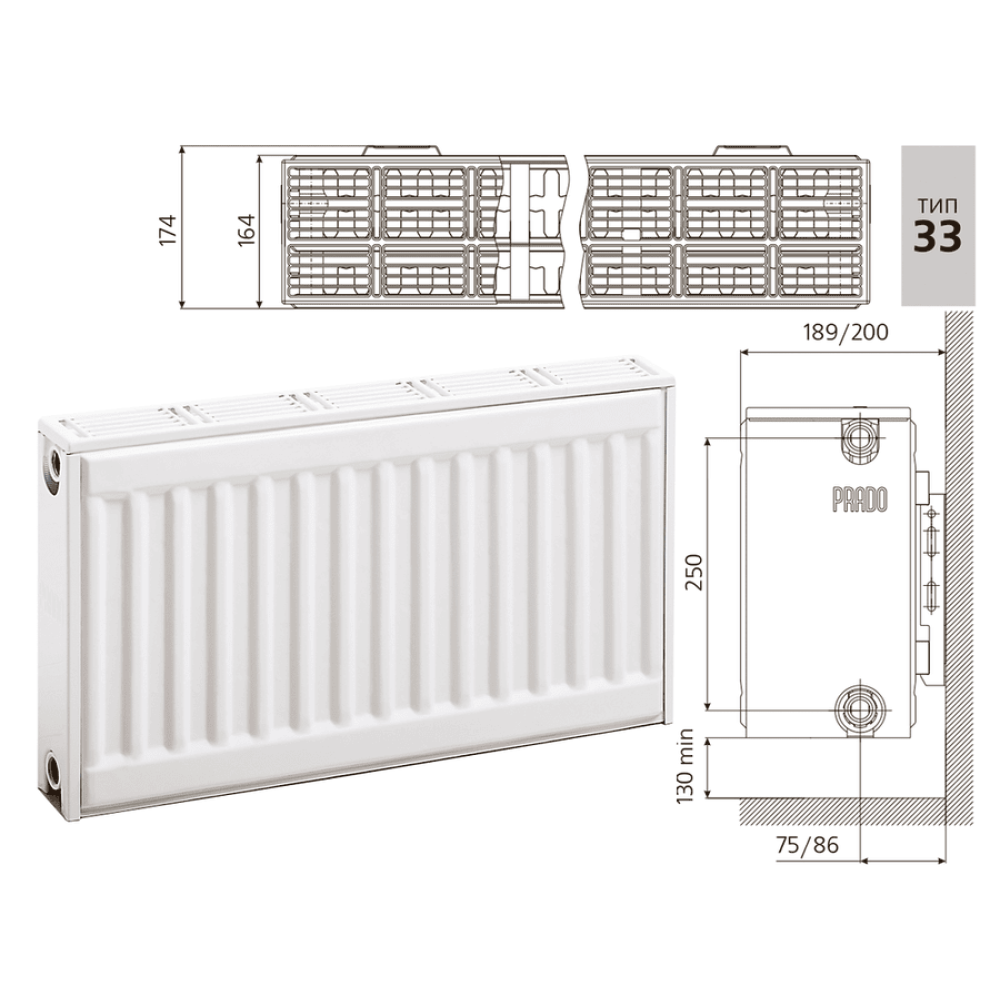 Радиатор Prado - cтальной панельный радиатор Prado с боковым подключением. Отопительные радиаторы данного типа предназначены для отопления жилых и производственных помещений в водяных системах отопления. Подключается радиатор Prado через 4 отверстия с внутренней резьбой 1/2".