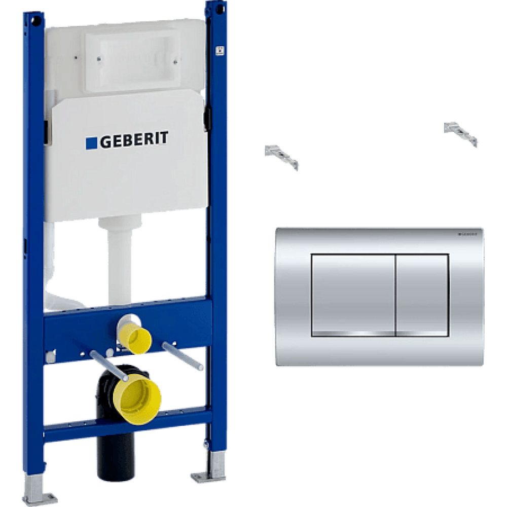 Инсталляция для подвесного унитаза Geberit Duofix Delta 458.163.21.1 с кнопкой смыва хром — надежная и стильная система для ванной комнаты, обеспечивает простоту и скорость монтажа подвесного унитаза. Стальная рама прочная, стабильна, выдерживает нагрузку до 400 кг. Возможно регулировка высоты, все элементы скрываются за стеной. Хромированная клавиша смыва в комплекте.