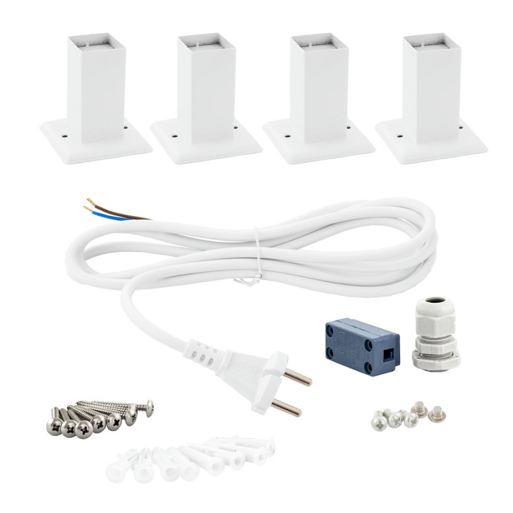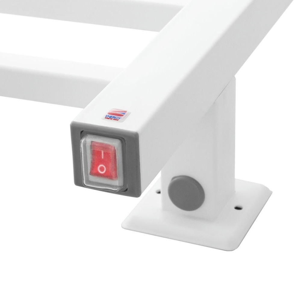 Нагревательный элемент прибора - греющий кабель в изоляции из кремнийсодержащей резины. Может быть подключен как скрытым, так и наружным способом. Подключение производится через правую нижнюю стойку. Оснащён влагозащищенным выключателем с индикатором работы.