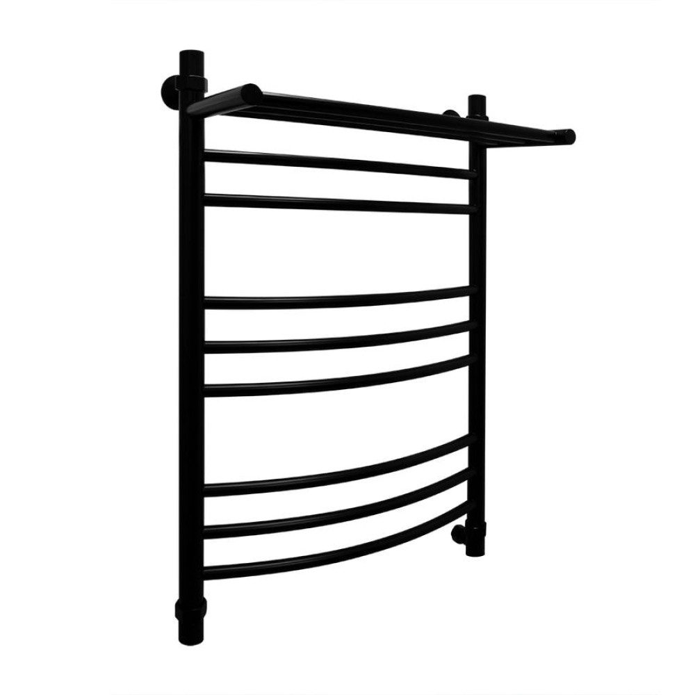 Водяной полотенцесушитель Energy Prestige Modus 800x500 RAL 9005 (черный матовый) - «лесенка c полкой» c выпуклыми перемычками, размещёнными группами. Дополнительная обогреваемая полка с 3 перекладинами увеличивает тепловую мощность и полезную площадь прибора, а также позволяет максимально удобно располагать на нем вещи для просушивания. Используется во всех системах горячего водоснабжения и отопления с рабочим давлением 3 - 15 атм при температуре теплоносителя до 105°С.