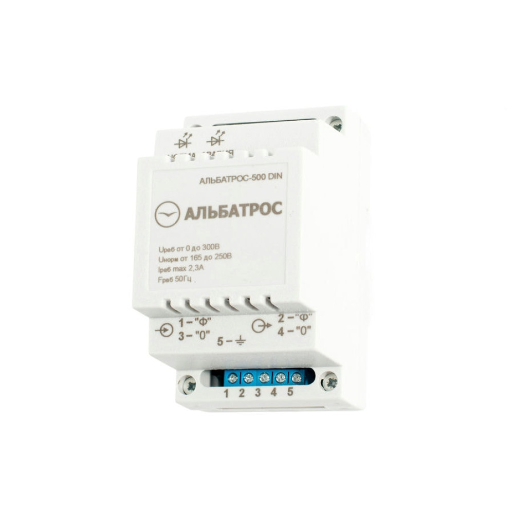 Защитное устройство АЛЬБАТРОС-500 DIN предназначено для защиты потребителей электрической сети 220 В, 50 Гц с потребляемой мощностью до 0,5 кВт от кратковременных и длительных перенапряжений до 500 В переменного тока промышленной частоты 50 Гц.