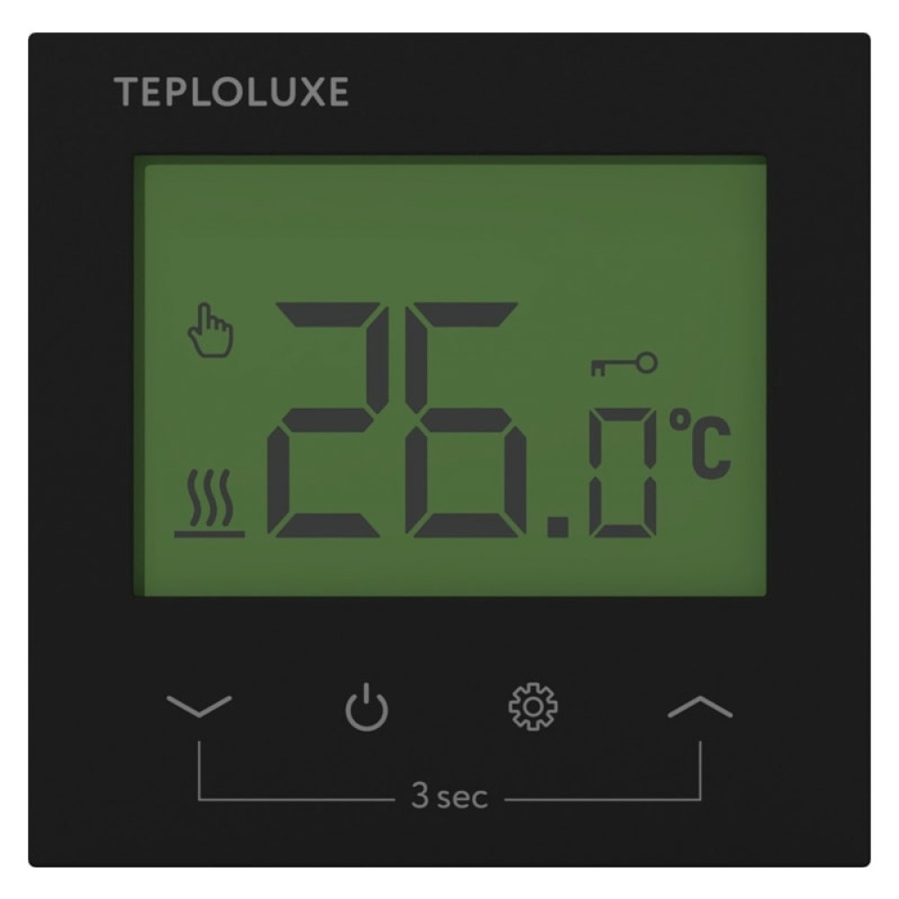 Терморегулятор оснащен информационным жидкокристаллическим экраном, отображающим состояние системы обогрева и сенсорными кнопками управления