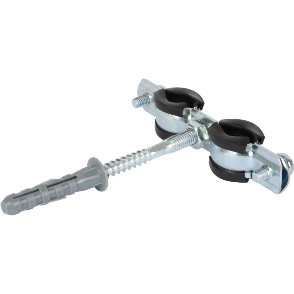Сдвоенный хомут для труб, комплект: хомут+шпилька шуруп +дюбель пластиковый 3/4"(25-29)