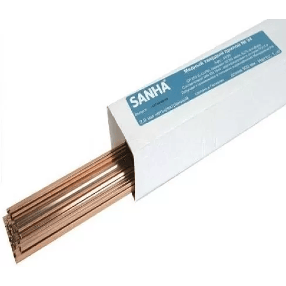 Припой твердый Sanha в штангах 2 мм L-CuP6, коробка 1 кг, 2mm, для медных труб под пайку арт. 84939
