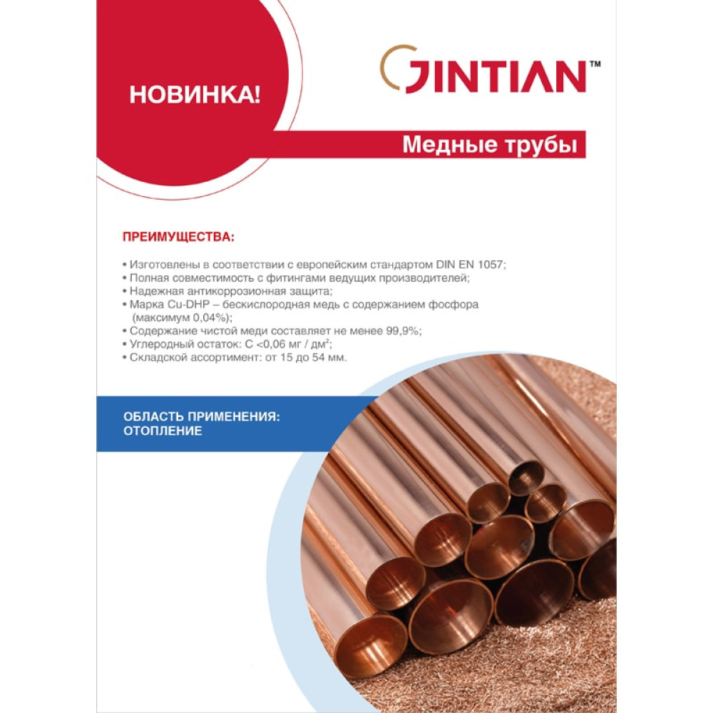 Ningbo Jintian Copper Tube Co., Ltd. основанная в 1986 году, уже более 30 лет производит высококачественные медные трубы и фитинги. За это время компания накопила большой опыт и стала глобальным производителем медных труб. Она известна за хорошее качество и конкурентоспособные цены, имеет отличную репутацию в мире.