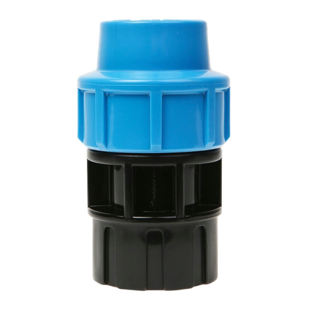 Муфта используется для установки ответвлений, переходов на резьбу и соединения различных диаметров труб. С помощью этой муфты можно соединять полиэтиленовые трубы без необходимости применения сварочного оборудования. Соединение частей трубопровода обеспечивается сборкой по резьбовому методу и последующей компрессией, что гарантирует герметичность. Муфту можно собирать и разбирать несколько раз. Ее эргономичная форма облегчает процесс установки.