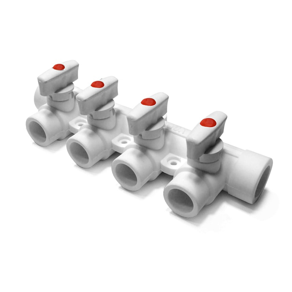 Полипропиленовый коллектор PRO AQUA предназначен для систем водоснабжения и отопления. Изделие имеет монолитный корпус белого цвета. Каждый выход коллектора оснащен шаровым краном с запорным элементом из высококачественной европейской латуни CW614N.