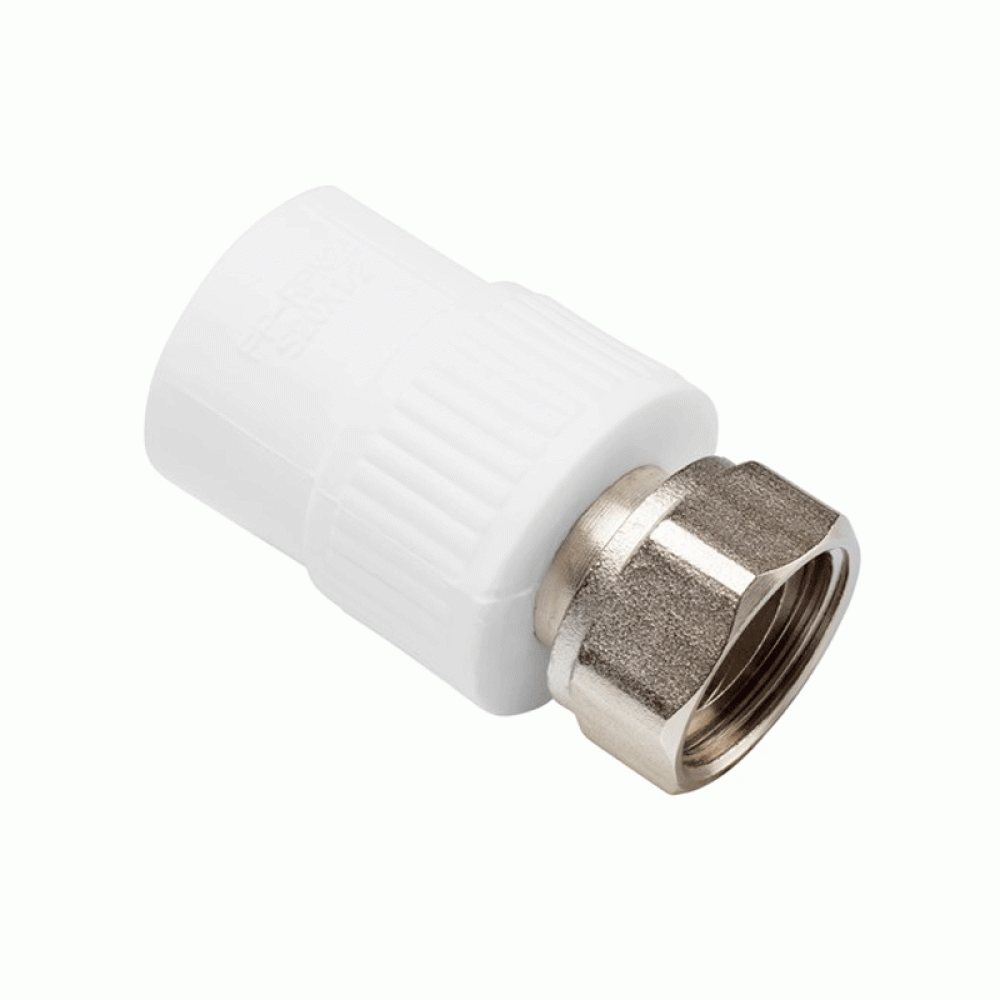 Муфта переходная полипропиленовая с латунной накидной гайкой обеспечивает соединение полипропиленовой трубы с резьбовым металлическим соединением. Монтируется с прокладкой и уплотнительными материалами. Полипропиленовая часть муфты приваривается к основному трубопроводу, а металлическая гайка обеспечивает многократную сборку-разборку узла.
