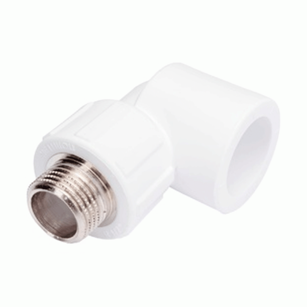 Угольник комбинированный с наружной резьбой используется для соединения под углом 90о трубы PPR с резьбовым фитингом с внутренней металлической резьбой. Такой угольник применяется в системах хозяйственно-питьевого водоснабжения и низкотемпературного отопления, высокотемпературного отопления отопительными приборами, а также для перекачки других жидких и газообразных сред, к которым материал труб химически стоек.