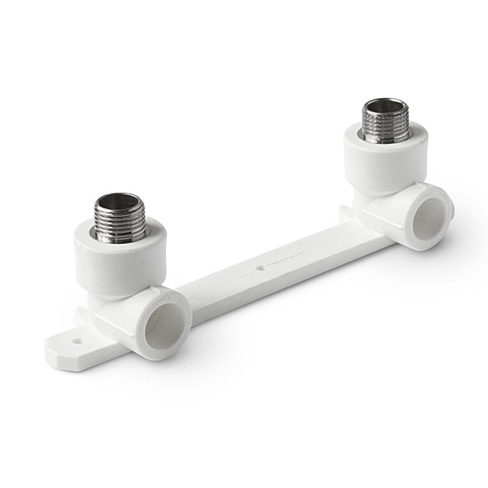 Полипропиленовый комбинированный двойной угольник PRO AQUA с наружной резьбой является настенным креплением для фиксации трубопроводов систем водоснабжения и отопления. Угольник позволяет плотно зафиксировать инженерные коммуникации, обеспечивая надежность всей конструкции. Двойные угольники с креплением чаще всего используются для разветвления трубопровода под определенным углом.