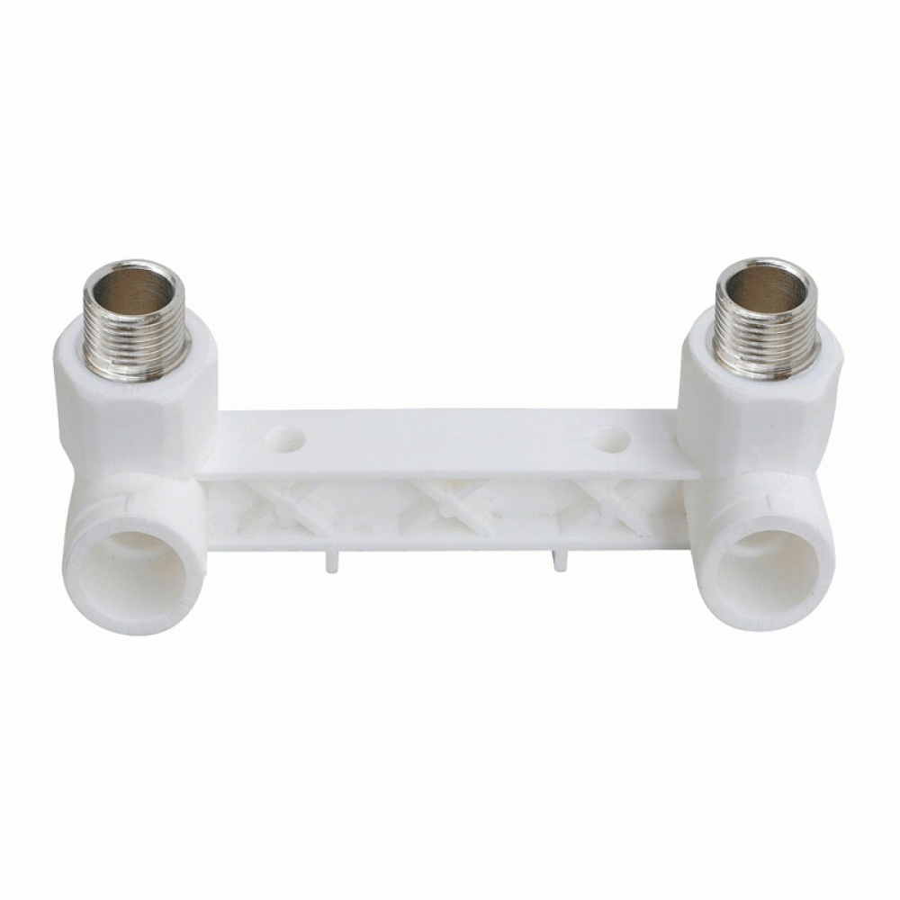 Угольники двойные (настенные комплекты) используется для установки смесителей в системах горячего и холодного водоснабжения с возможностью крепления к вертикальной поверхности. Выпускаются диаметром 20 и 25 мм под наружное или внутреннее соединение со смесителем. Закладные детали - латунь.