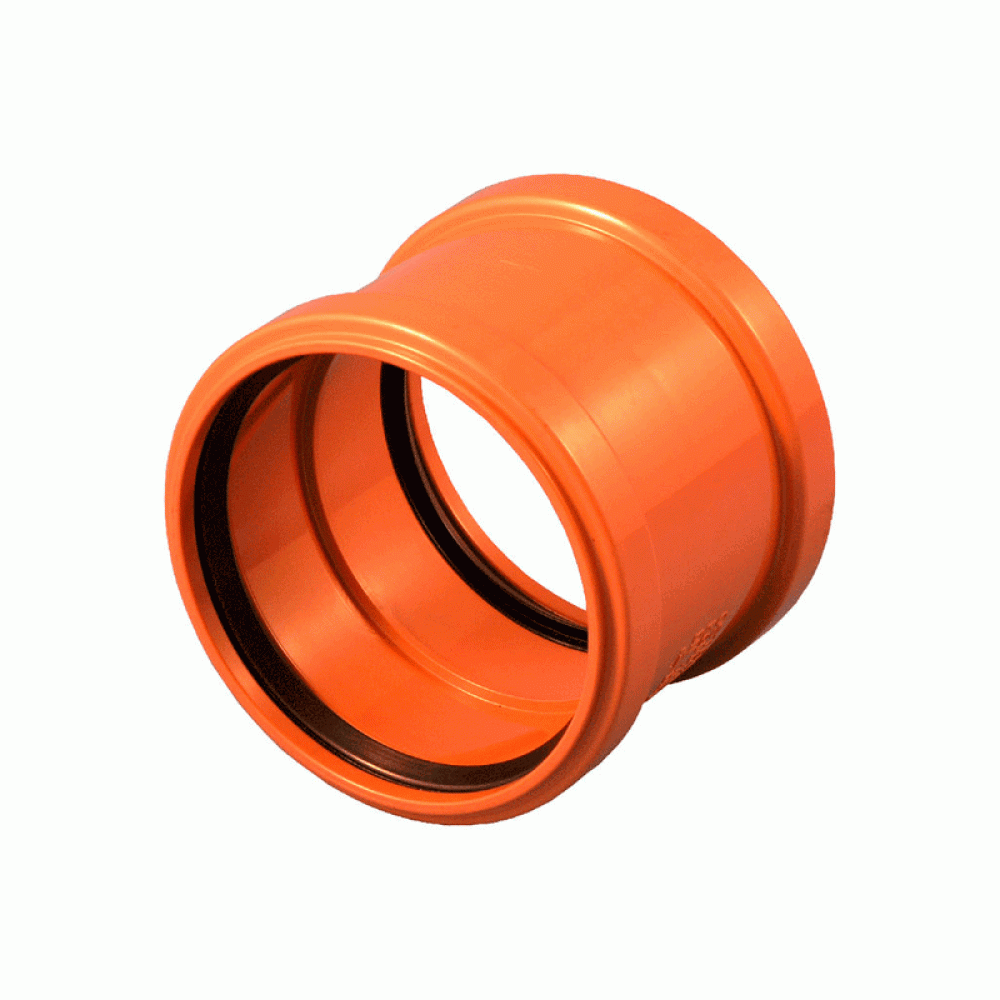 Муфты канализационные TEBO безнапорные, соединительные, материал - полипропилен PP, оранжевые, для наружной канализации - полипропиленовые и комбинированные муфты под сварку для соединения труб между собой, для перемонтажа фрагментов трубопровода, соединения труб разных диаметров, перехода и подключения запорно-регулирующей арматуры и других фасонных частей.