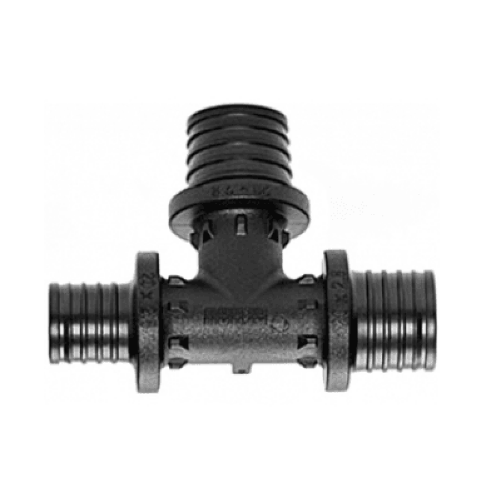 Тройник Rehau PX 20-20-16 мм с уменьшенным торцевым проходом (арт.11600711001) . 160071-001) изготовлен из полифенилсульфона (PPSU) чёрного цвета. Вес фитинга составляет около 22 г.