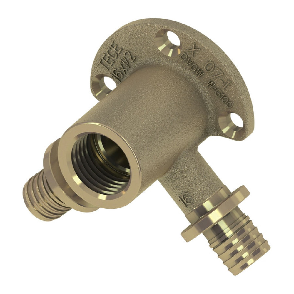 Тройник угловой с креплением TECEflex 16х1/2"х16 мм латунь