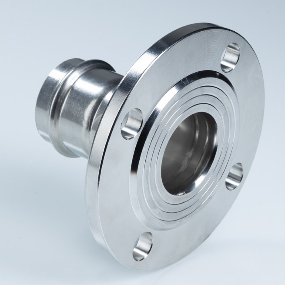 Пресс-фитинг из нержавеющей стали с переходом на фланец обеспечивает соединение тонкостенной стальной трубы с фланцевым элементом монтируемой системы. Область применения – трубопроводы водоснабжения, отопления, иные инженерные и технологические установки с рабочей температурой до 120 °С и давлением до 16 бар.