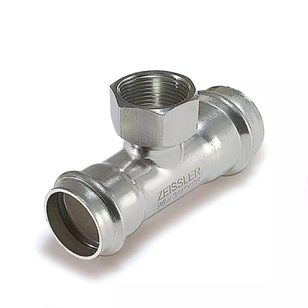 Пресс-тройник из нержавеющей стали Tim с ВР резьбой 28х1/2" мм