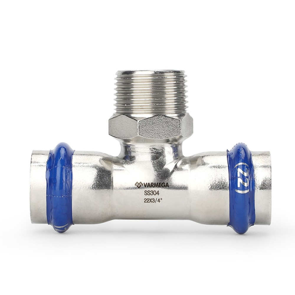Тройник раструбный Varmega Inox Press с НР резьбой 28х3/4" мм