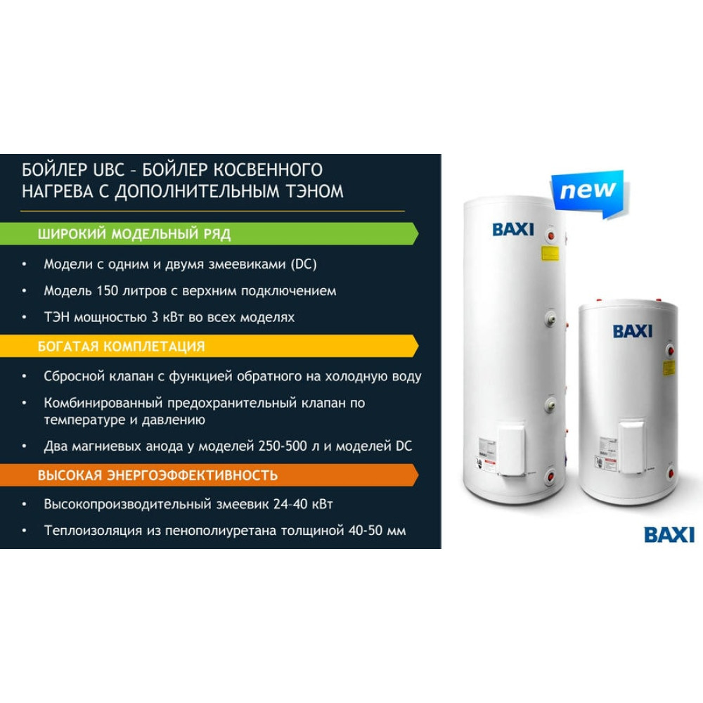 Водонагреватели «BAXI» серии UBC предназначены для нагрева горячей воды хозяйственно-бытовых нужд.