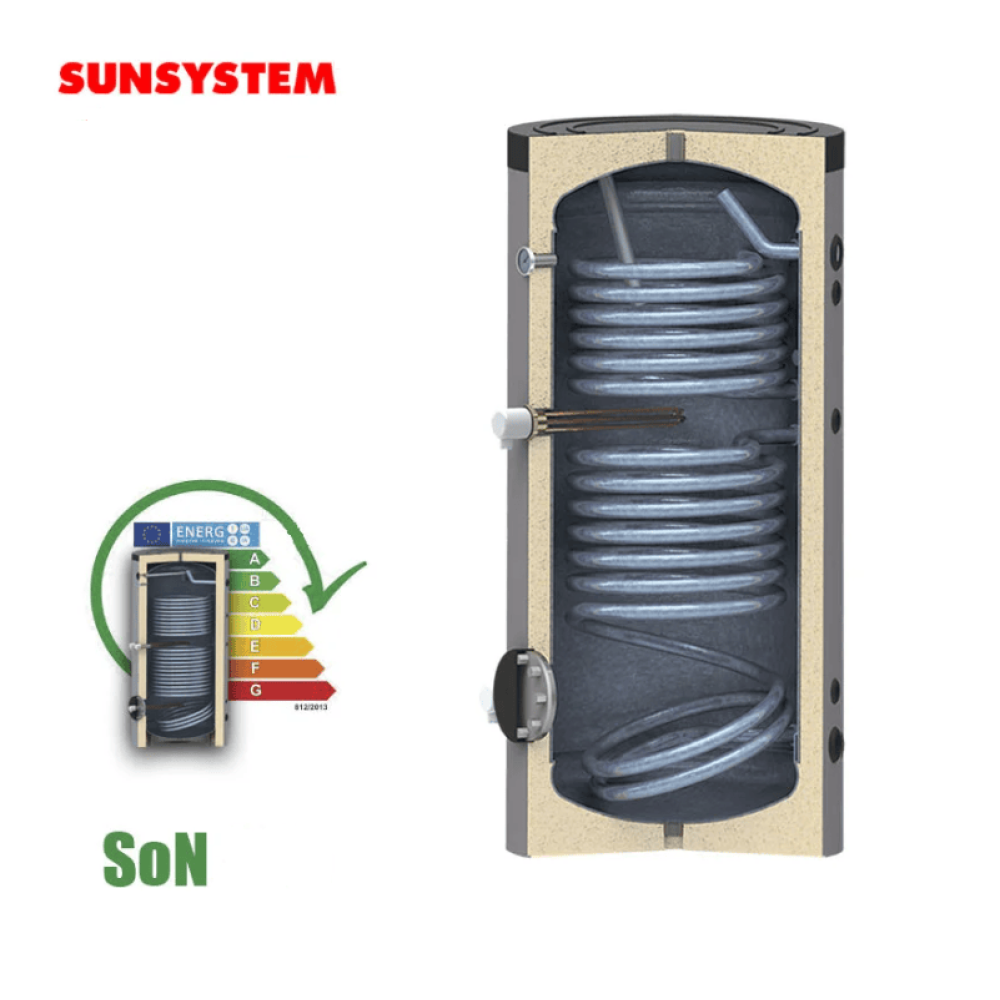 Напольный бойлер косвенного нагрева Sunsystem SON в вертикальном исполнении предназначен для подключения к гелиоустановке или котлу. Энергоэффективность, эстетическое ПВХ покрытие корпуса, простая установка, а также встроенное смотровое отверстие вот главные преимущества данной модели.