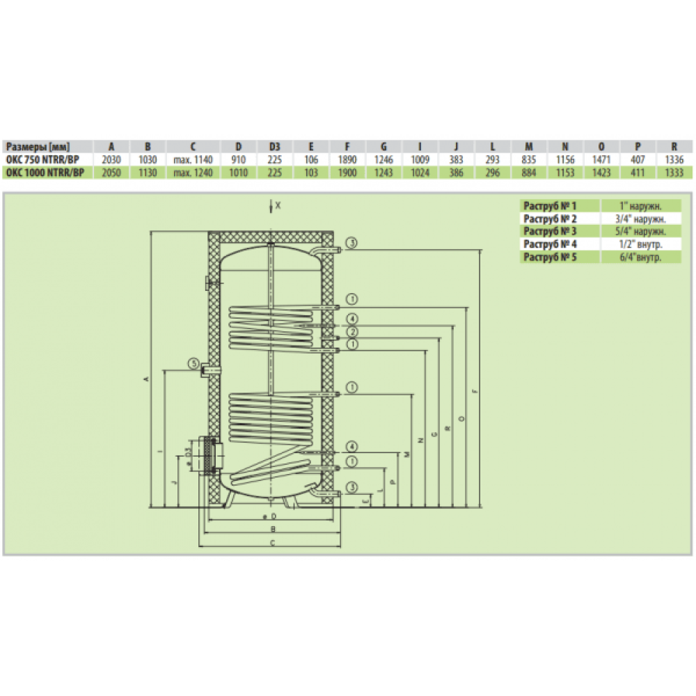 Водонагреватели косвенного нагрева воды объёмом 300–1000 литров с эмалированным резервуаром при рабочем давлении до 1 Mpa. Водонагреватели оборудованы одним (NTR) либо двумя (NTRR) мощными спиральными теплообменниками, гильзами для датчиков контроля и управления, и также смотровым фланцевым люком. Для нагрева ГТВ применяется горячая вода с макс. температурой 110 °C и давлением 1МПа. В смотровом люке можно смонтировать вспомогательный электронагрев­ательный элемент серии R и SE (см. каталог дополнительного оборудования). Патрубок 6/4" над нижним теплообменником предназначен для монтажа вспомогательного электронагрев­ательного элемента серии TJ для дополнительного нагрева ГТВ (см. каталог дополнительного оборудования). Такой дополнительный нагрев применяется при подключении водонагревателя к системе на солнечных батареях. У водонагревателей объёмом до 500 литров изоляцией служит слой твёрдой полиуретановой пены толщиной 50 мм. Водонагреватели на 750 и 1000 литров изолированы слоем 100 мм мягкой полиуретановой пены (молитаном) и поставляются отдельными узлами с резервуаром.