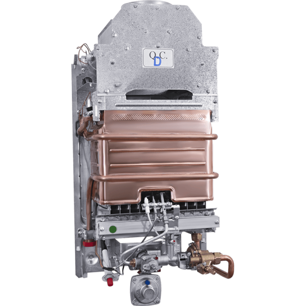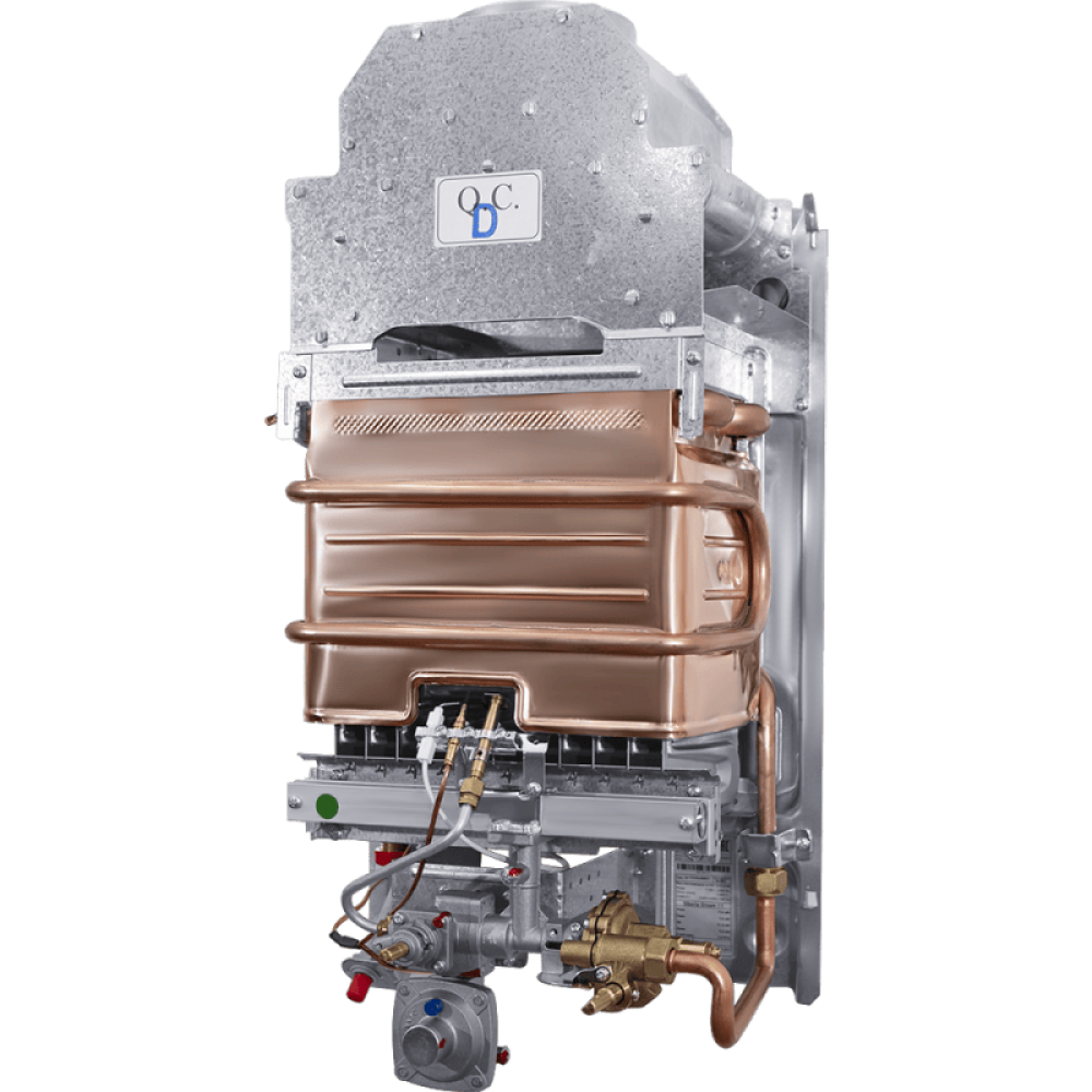 Работает на природном газе, но также возможно использование сжиженного газа. Переключатели на корпусе приборе регулируют расход газа и расход горячей воды. Пьезорозжиг работает не зависимо от сети и батареек.