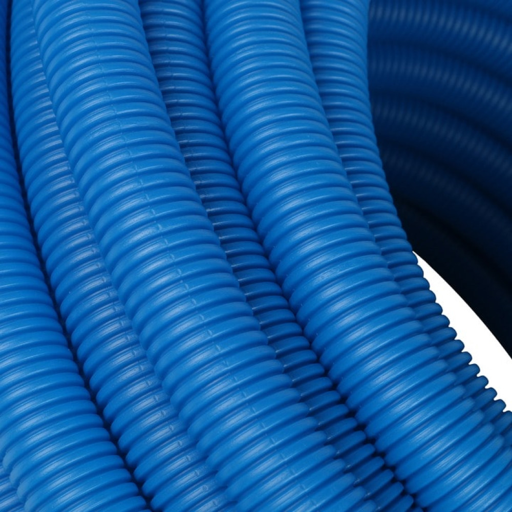 Гофрированная труба Stout 32 мм синяя (для труб 25 мм) в бухтах 50 метров - 1 м предназначена для протяжки газовых труб и труб водоснабжения через строительные конструкции (стены, перегородки, перекрытия). Также защитные трубы подходят для прокладки под заливку бетоном и для монтажа в цементной стяжке. Не допускается использование труб в качестве газовых или напорных труб водоснабжения и водоотведения.