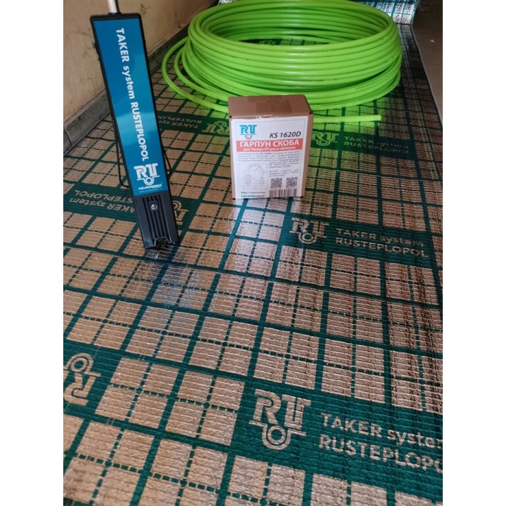 Комбинированная рулонная теплоизоляция для теплого пола (мультифольга). Подложка под теплый пол TAKER system RUSTEPOPOL состоит из вспененного полиэтилена толщиной 2 мм с односторонним металлизированным пленочным (ПЭТ) покрытием, которое выполняет защитную функцию и способствует равномерному распределению тепла от греющих труб по всей поверхности пола. Пенополиэтилен – химически нейтральный, слабогорючий и экологически чистый материал с отличными тепло-, звукоизоляционными свойствами и влагостойкостью. Для удобства монтажа греющих труб на поверхность теплоизоляции нанесена клеточная разметка. Малая толщина материала позволяет уменьшить общую толщину конструкции теплого пола
