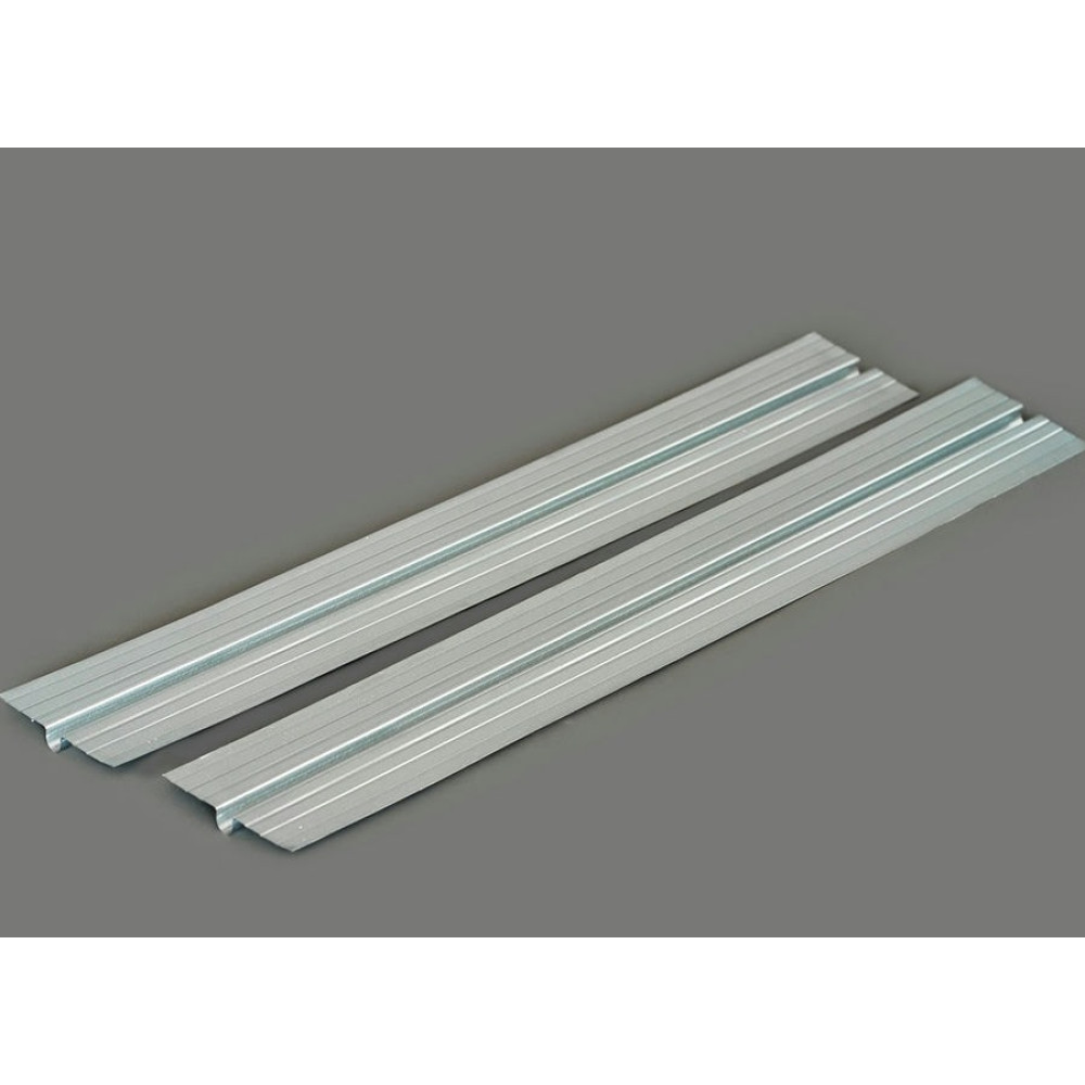 Теплораспределительные пластины изготовлены из оцинкованной стали, имеют (омега)-образный профиль, позволяющий плотно охватить поверхность труб Ø 16 мм., распределяя 95% теплового потока, а так же специальные ребра жесткости для усиления конструкции, и компенсации теплового расширения. Тепловая мощность системы 50-200 Вт/м2, в зависимости от типа напольного покрытия и способа укладки трубы (минимальный шаг укладки 150 мм)